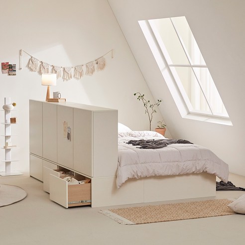파운드 Q 침대 세트는 좁은 공간을 효율적으로 활용하고자 하는 사람들에게 최적의 선택입니다. 넉넉한 수납 공간은 공간을 더욱 넓게 사용할 수 있도록 도와주며, 화이트 색상은 어떤 인테리어에도 잘 어울려 모던하고 세련된 분위기를 연출합니다.