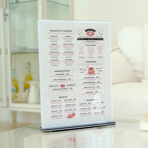 “매장 분위기를 바꾸고 싶어서 구매했는데, 예상보다 훨씬 튼튼하고 예뻐서 만족스러워요. 특히, 양면으로 정보를 표시할 수 있어서 공간 효율성이 너무 좋아요!”